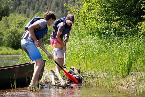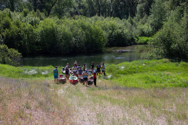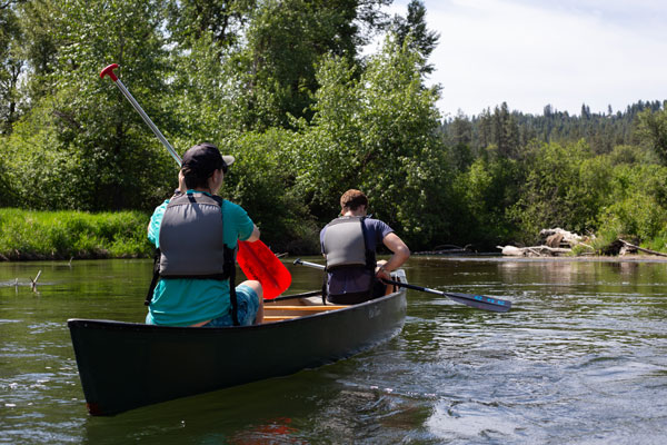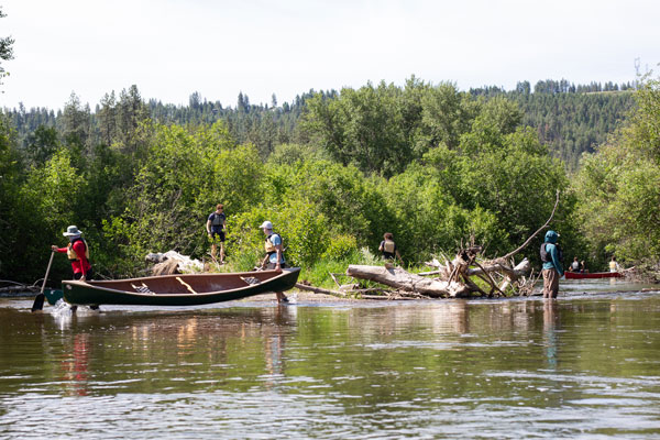 I arrived at the Glen Tana property at midmorning, around ten o’clock. Already, my compatriots for the day were there to greet me. A group of high school students and three faculty members from the nearby Saint George’s School were unloading wooden canoes from the school’s truck. This group of young people were there for an important mission in service to their community: cleaning up the Little Spokane River. In coordination with the Inland Northwest Land Conservancy and local regulatory agencies, we would be covering a stretch of the waterway from Glen Tana all the way to Saint George’s School.