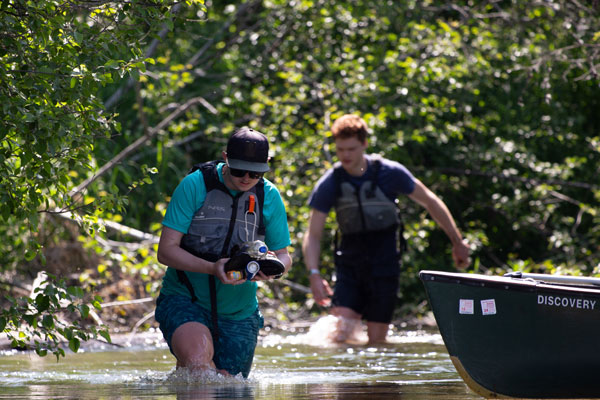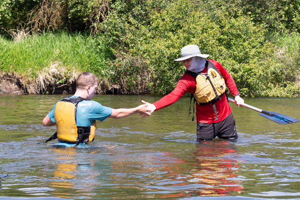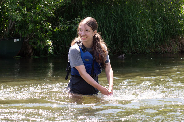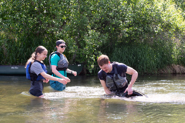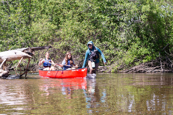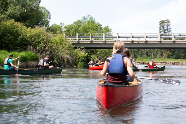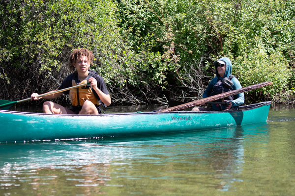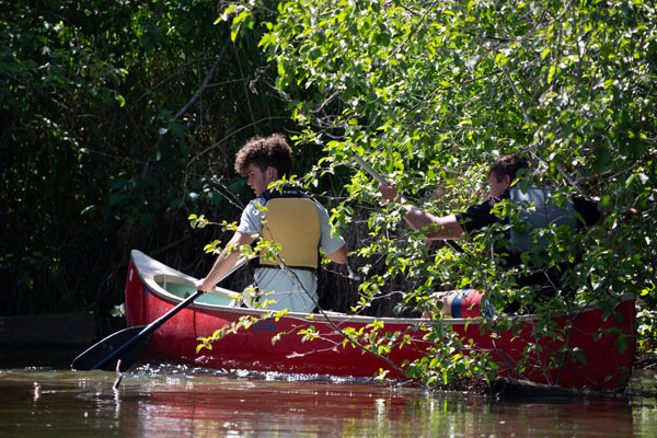 With the sun shining and a mellow breeze in the air, the weather was balmy and perfect for the task at hand. The students wasted no time in getting started. With two of us per canoe, we hauled them across the grassy field and down to the welcoming banks of the Little Spokane.