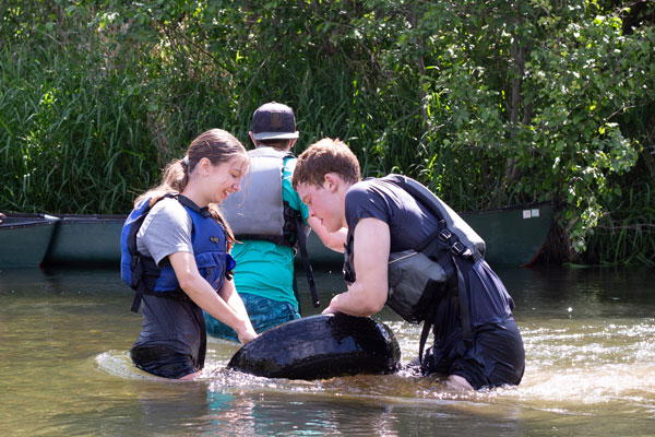 Aside from the staggering number and variety of items found by this group of students, it was their enthusiasm and determination that was indeed very impressive. There is no way for me to overemphasize the exuberance with which they cleaned one of Spokane’s most important natural features. They would reach, sometimes fully submerged, into the depths of the river or guide their canoes into the dense and tangled thicket of trees lining it, all the while laughing, smiling, and joking with their peers and mentors. A prime example of their resolve was when a group of students heaved a whole tire, ensnared in years of mud and sediment, from the Little Spokane. In fact, two tires were extracted from the river that day.