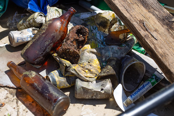Our first stop was a small island bifurcating the Little Spokane. The island was beautiful, abounding with local foliage, logs, and bordered by rocky beaches. With my untrained eye, I saw no litter and wondered to myself what we could possibly find there. The Saint George’s students quickly showed me. They pulled from this picturesque scenery cans, bottles, plastic products, clothing, and more golf balls than I’ve seen outside the context of a driving range. It was around this time that I was told extra points would also be awarded to the person who could find a pair of matching footwear—a feat which was indeed accomplished by the end of the cleanup. At one point, a student pulled a piece of fabric from the bed of the river. It kept on coming like a clown’s seemingly infinite handkerchief. Another student found a large portable speaker fully submerged in the water.