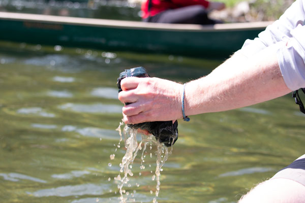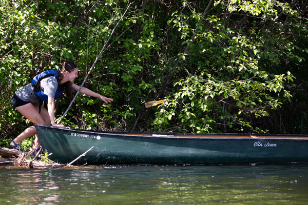 Once the canoes were all in line and ready to go, we received a briefing from the school’s outdoor coordinator. Rules and safety measures were detailed and, perhaps most importantly, an announcement was made: the group that gathered the most trash would be treated to milkshakes, with extra points given to the most interesting pieces found. Gathered there on the bank, the energy of the students was magnetic and it was clear they meant business. Soon after this briefing I found myself stepping into the crisp waters of the Little Spokane and then into the middle of a canoe where I would spend the next couple of hours documenting the work of these industrious and ambitious young folks.